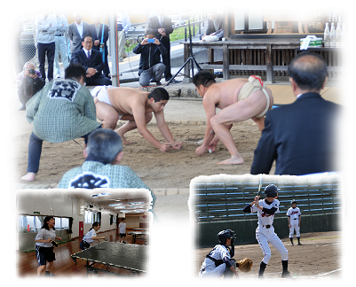 軟式野球、バレー、バスケ、サッカー、相撲、駅伝 など