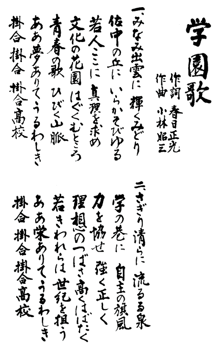 | 昭和38年10月 1日 | 創立10周年記念式典挙行、学園歌制定 |
