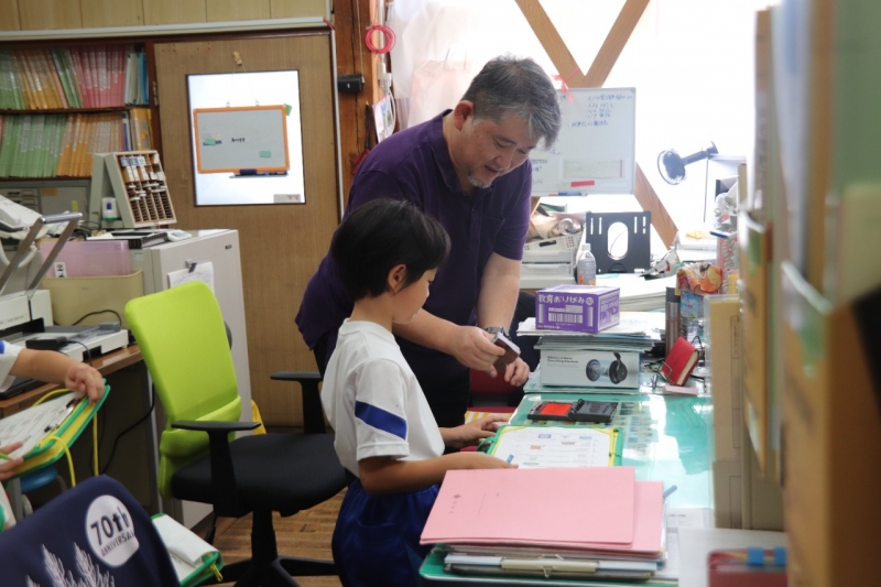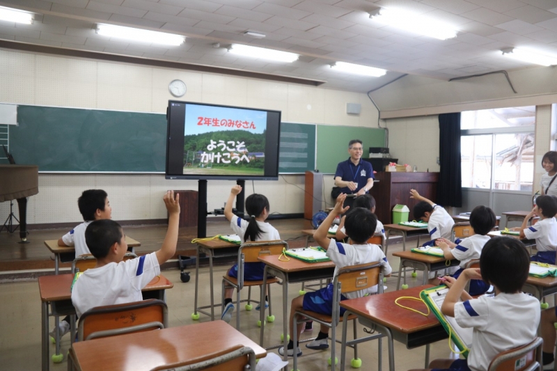 7月16日(水)掛合小学校2年生10名が生活科「町たんけん」の学習で掛合分校に来てくれました。