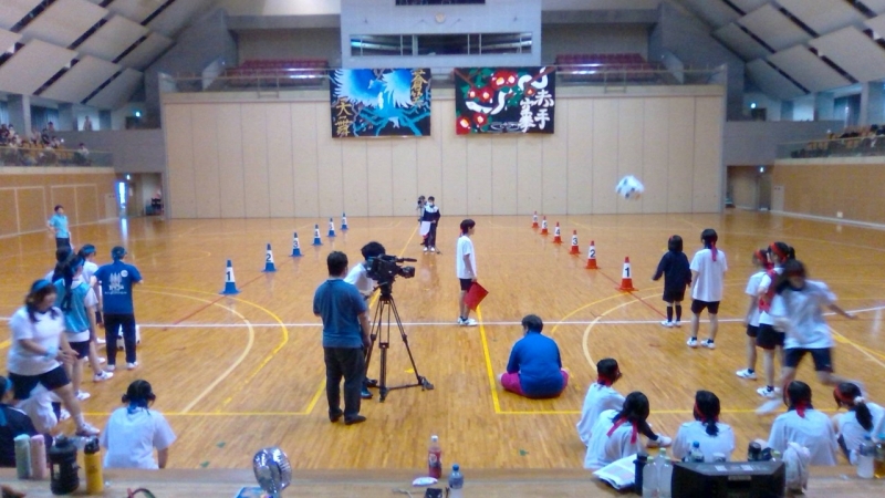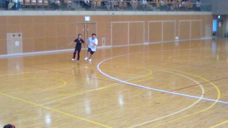 最初の種目「鬼ごっこ」は、男女・学年が入り混じった10名の逃げ役が背中に貼り付けた鉢巻きを鬼役3名に取られまいと、競技時間3分間にバレーボールコート内を縦横無尽に逃げ回る競技です。