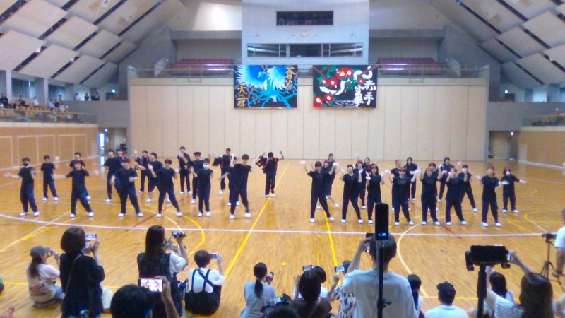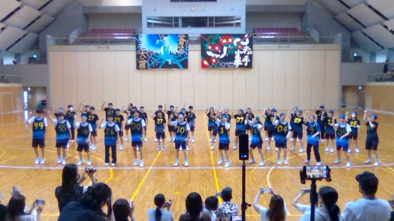 どちらの組も3年生を中心によくまとまっており、体育祭サブテーマ “笑顔と絆が紡ぐ、青春の物語” のとおり、応援合戦が展開されました。