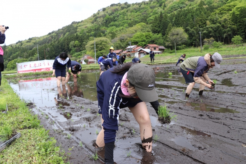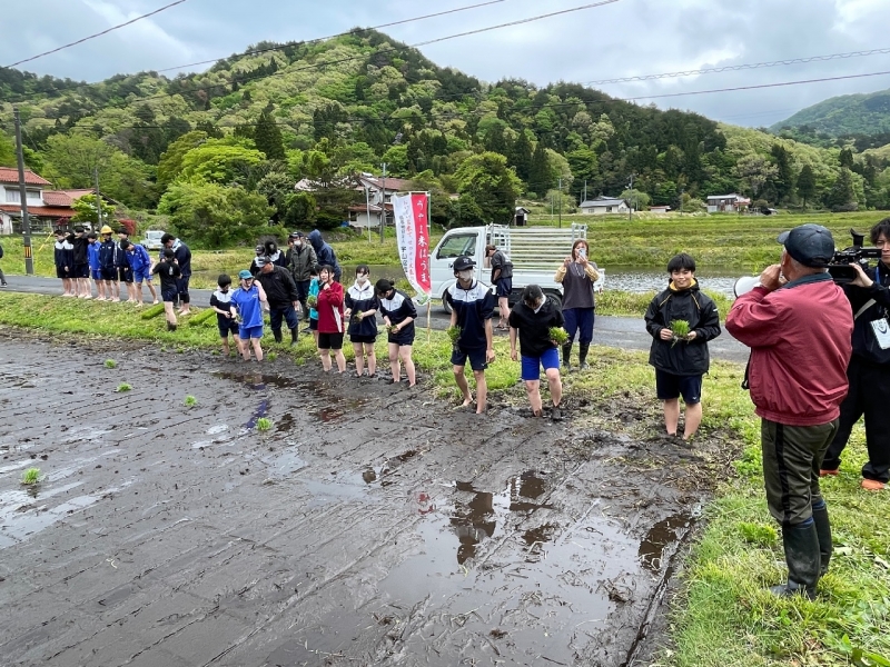 5月9日(金)に2年生が「営農体験実習(田植え)」のため、吉田町民谷宇山地区へ出かけました。当日朝は小雨が降り、田植えができるか心配されましたが、午前中の小止みのタイミングで無事に実習を終えることができました。また、午後にはお世話になる宇山営農組合・雲南市から講義を受けたり、生徒たちからインタビューを行ったりしました。