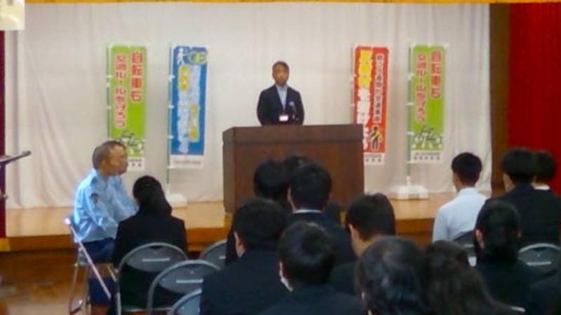 5月2日(金)6限の生徒総会のあとに、交通マナーアップモデル校及び自転車鍵掛け推進モデル校指定式がありました。