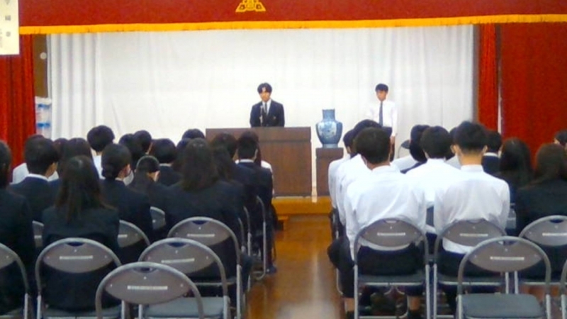 演説では会長候補、議長候補ともに掛合分校を挨拶ができる学校、明るい学校へしたいなどと抱負を語り、生徒たちへ訴えかけました。