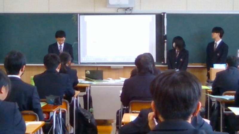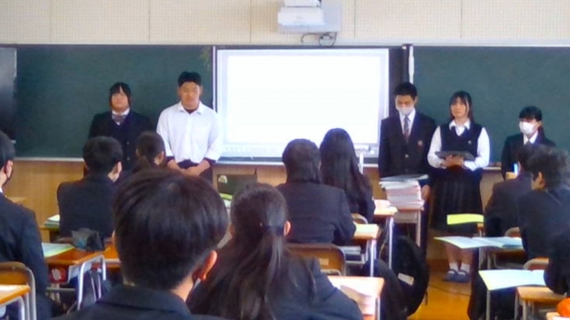 4月25日(金)4限の総合的な探究の時間に、2年生から1年生へ「地域探究学習」の引継ぎがありました。