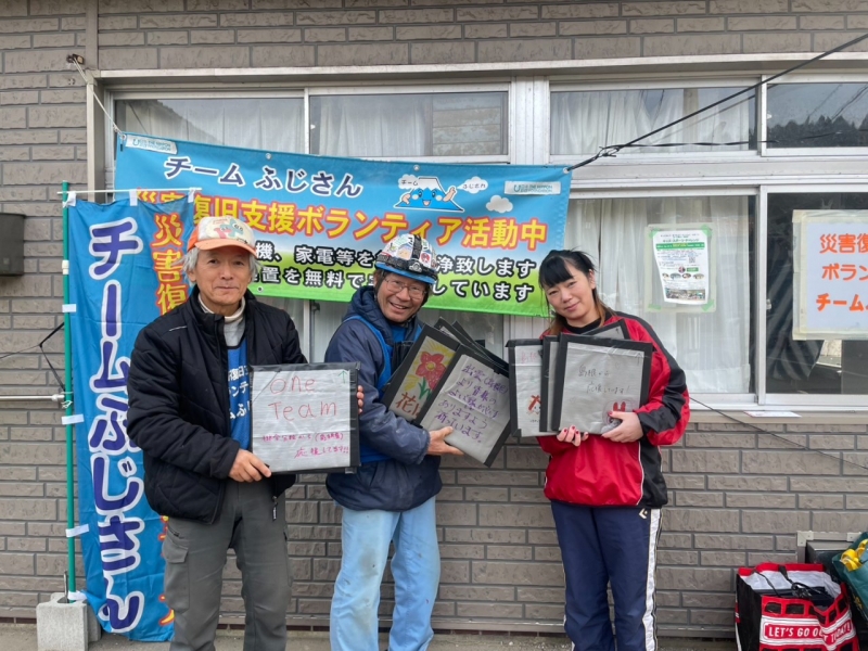 その「アシスト瓦」を皆の思いとともに、地元で支援活動しておられる災害復旧支援チームふじさんに直接届けてくださいました。ありがとうございます。
