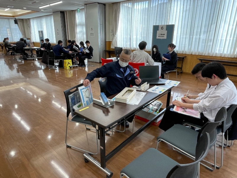 企業ごとにブースが設けられ、生徒は数名ずつに分かれて、20分単位で1回の説明・質疑応答を4回繰り返し受けました。
