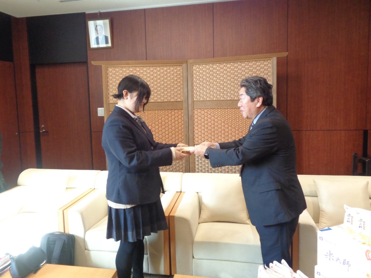 当日は市教育委員会教育長の小田川 徹哉様から頂戴しました。