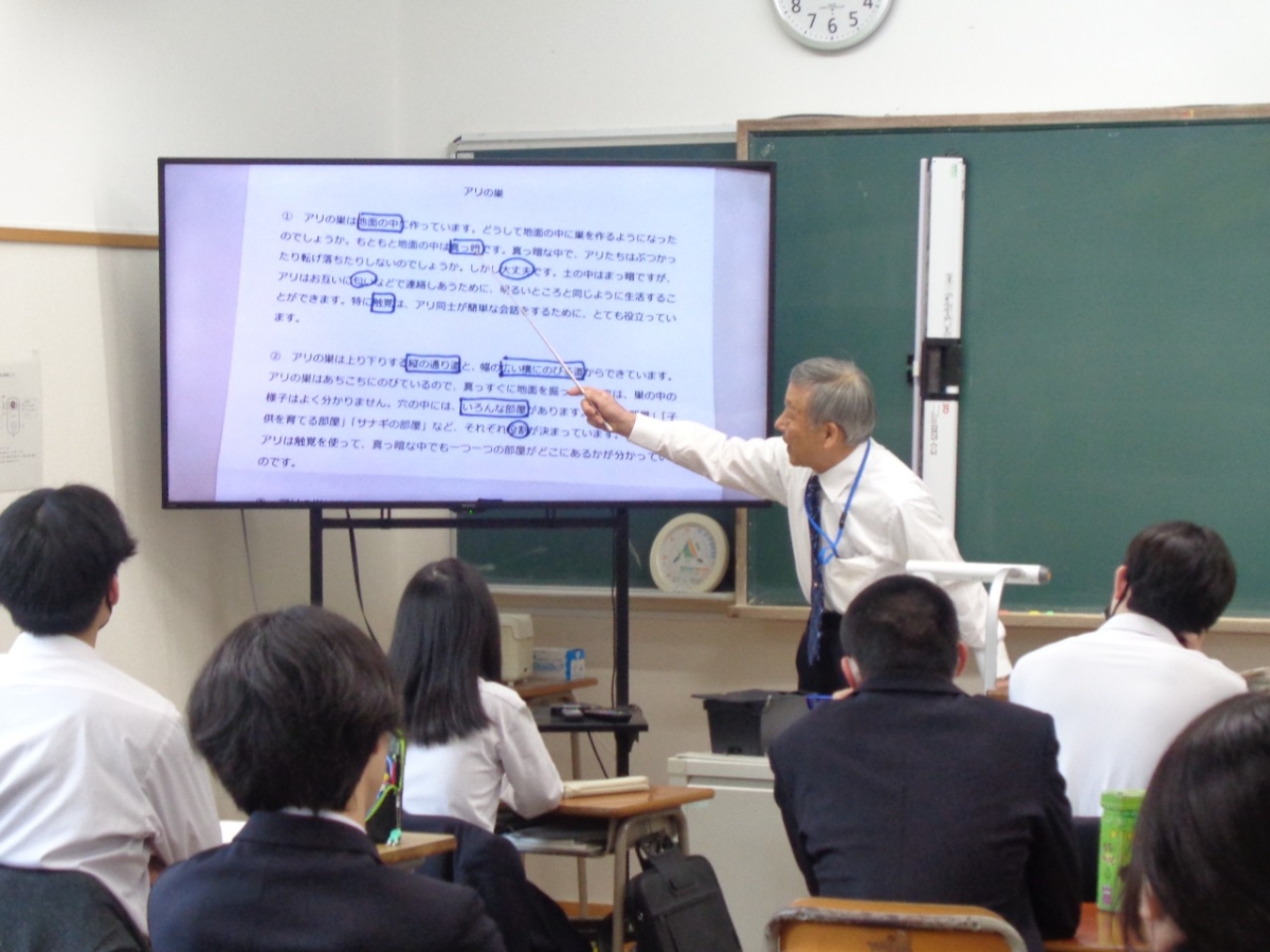 3月10日(火)2限の2年文学国語の授業は、飯南町教育委員の烏田勝信先生を講師にお迎えして、「要約学習」を行いました。烏田先生には令和3年度から毎年講義をしていただいていますが、この2年生は一昨年12月12日(木)に第1回を実施しました。